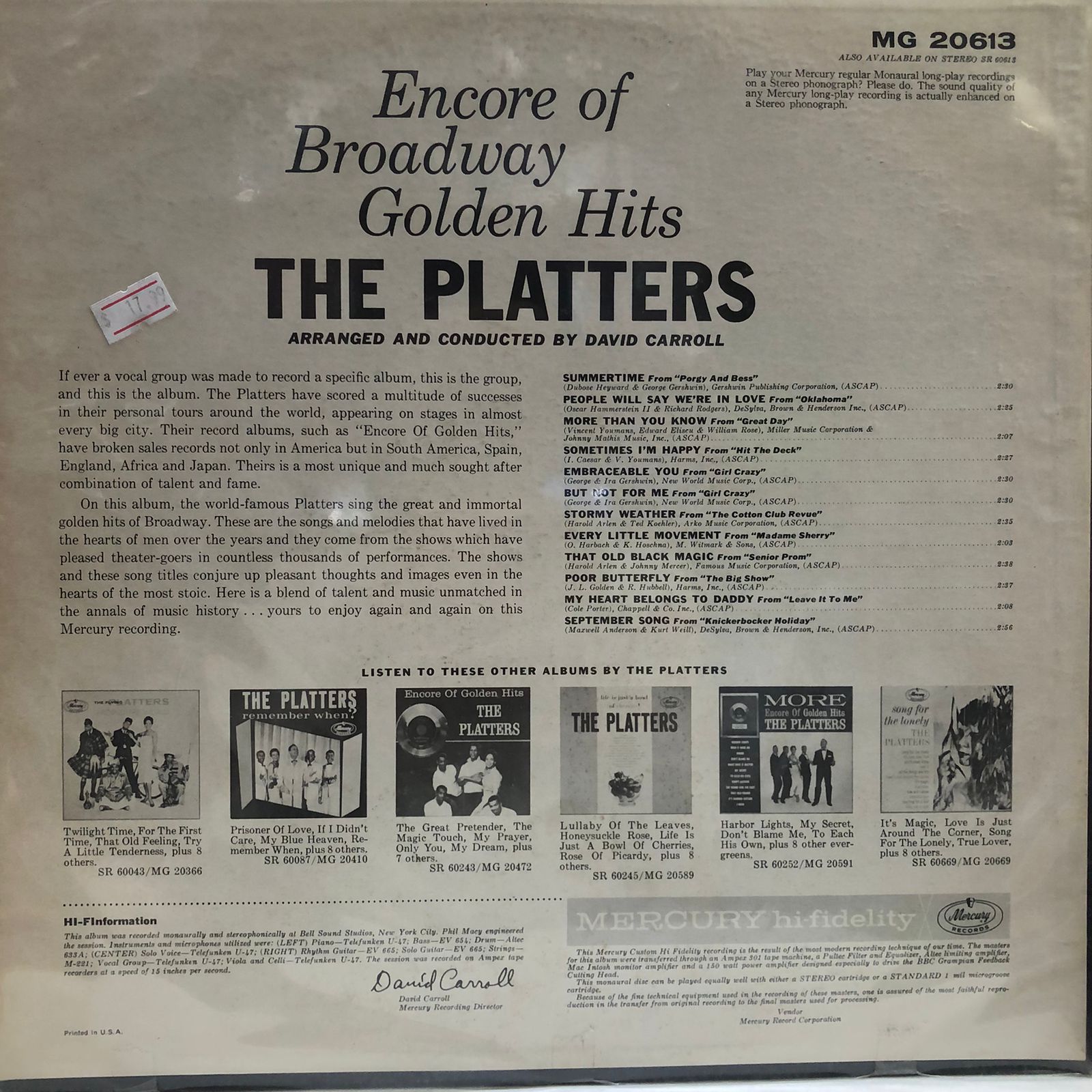 THE PLATTERS - ENCORE OF BROADWAY GOLDEN HITS LP